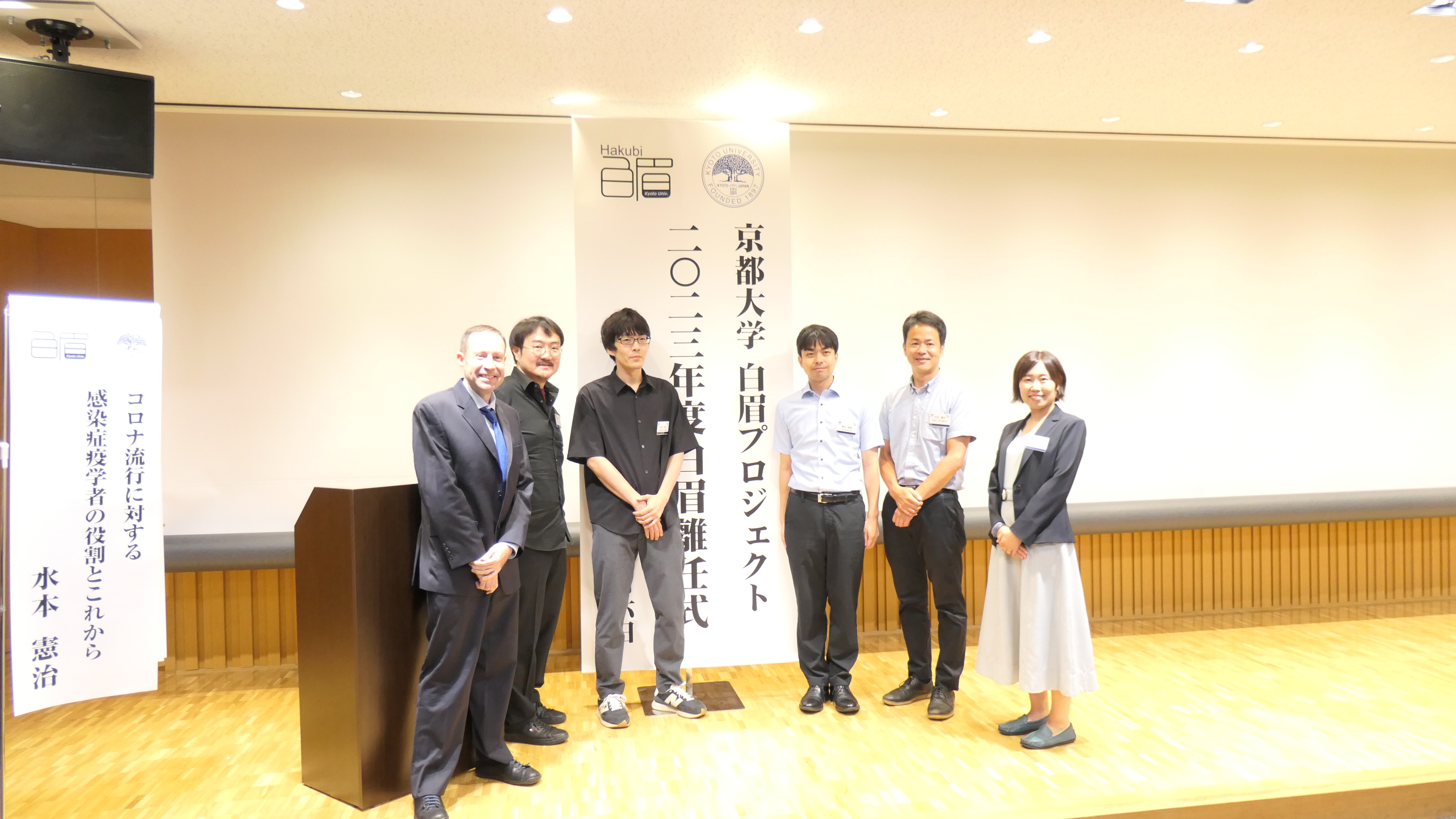白眉研究者として5年の歳月を過ごされた先生方を送り出すべく、2023年度 白眉離任式が2023年9月6日(水)に国際科学イノベーション棟にて行われました。湊 長博総長、時任 宣博理事、髙倉 喜信センター長をはじめ、白眉プロジェクトの運営に尽力してくださっている多くの先生方にお越しいただき、厳かでありながらも和やかな雰囲気の中、離任式が執り行われました。今回の離任式では、第8期・第9期白眉研究者7 名(発表順)が登壇しました。